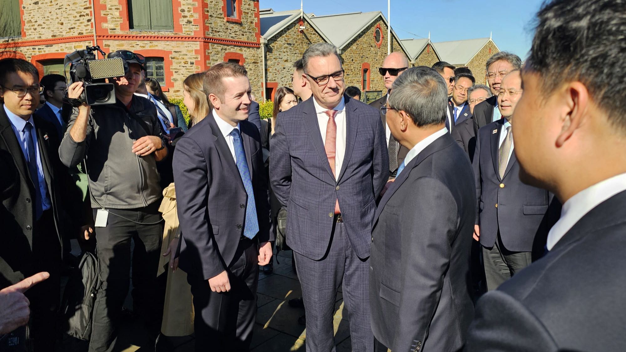The visit also included welcomes from South Australian Premier Peter Malinauskas, Australian Trade Minister Don Farrell, and Foreign Minister Penny Wong at the Penfolds Magill Estate, guided by Chief Winemaker Peter Gago.